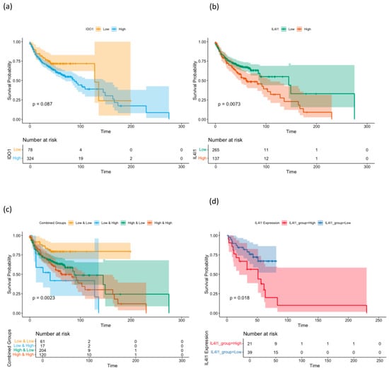 2.2. Prognostic Impact of the Expression of IDO1 and IL4I1