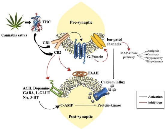 2. Pertwee, R.G. The diverse CB1 and CB2 receptor pharmacology of three plant cannabinoids: Delta9-tetrahydrocannabinol, cannabidiol and delta9-tetrahydrocannabivarin. Br. J. Pharmacol. 2008, 153, 199–215. [Google Scholar] [CrossRef] [PubMed]