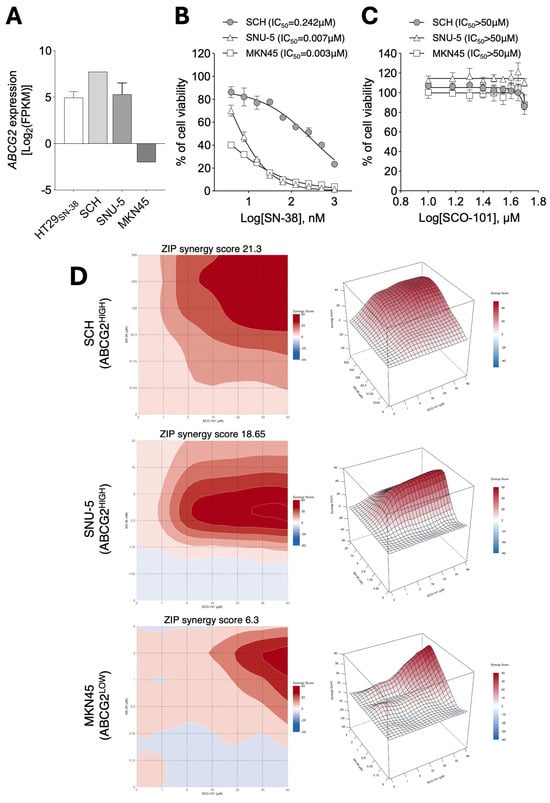 2.4. ABCG2 Expression Levels Correlate with Response to SCO-101 in Combination with Anti-Cancer Agents