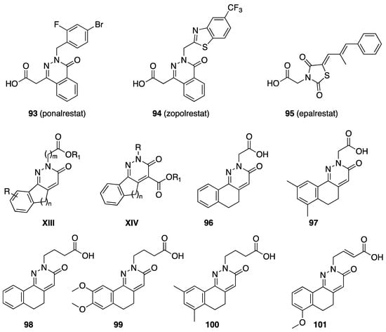 - Mylari, B.L.; Zembrowski, W.J.; Beyer, T.A.; Aldinger, C.E.; Siege, T.W. Orally active aldose reductase inhibitors: Indazoleacetic, oxopyridazineacetic, and oxopyridopyridazineacetic acid derivatives. J. Med. Chem. 1992, 35, 2155–2162. [Google Scholar] [CrossRef]