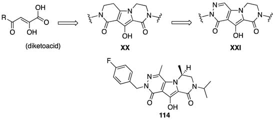 - Wiscount, C.M.; Williams, P.D.; Tran, L.O.; Embrey, M.W.; Fisher, T.E.; Sherman, V.; Homnick, C.F.; Staas, D.D.; Lyle, T.A.; Wai, J.S.; et al. 10-Hydroxy-7,8-dihydropyrazino[1’,2’:1,5]pyrrolo[2,3-d]pyridazine-1,9(2H,6H)-diones: Potent, orally bioavailable HIV-1 integrase strand-transfer inhibitors with activity against integrase mutants. Bioorg. Med. Chem. Lett. 2008, 18, 4581–4583. [Google Scholar] [CrossRef]