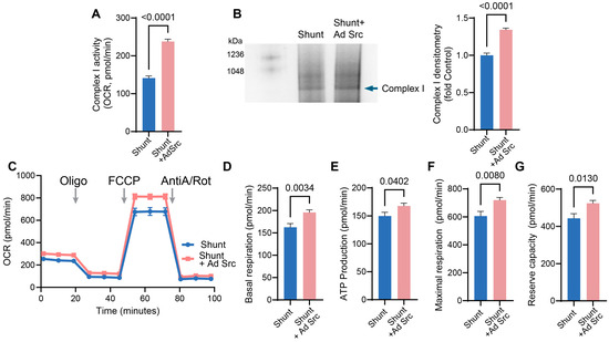 2.5. Restoration of pp60Src Protein Levels Improves ETC Complex I Activity and Bioenergetics in Shunt PAECs