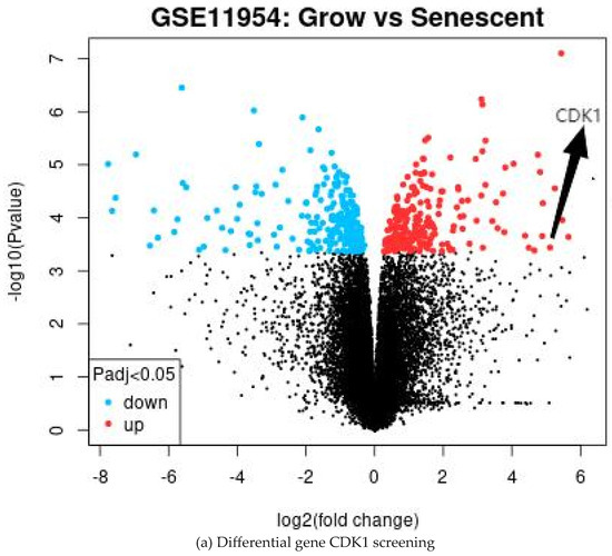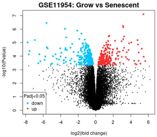 To investigate differential gene expression in growing and senescent-activated hepatic stellate cells (HSCs), GSE11954 gene expression profiles were downloaded from the Gene Expression Omnibus (GEO, https://www.ncbi.nlm.nih.gov/geo, accessed on 10 August 2024) database.