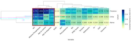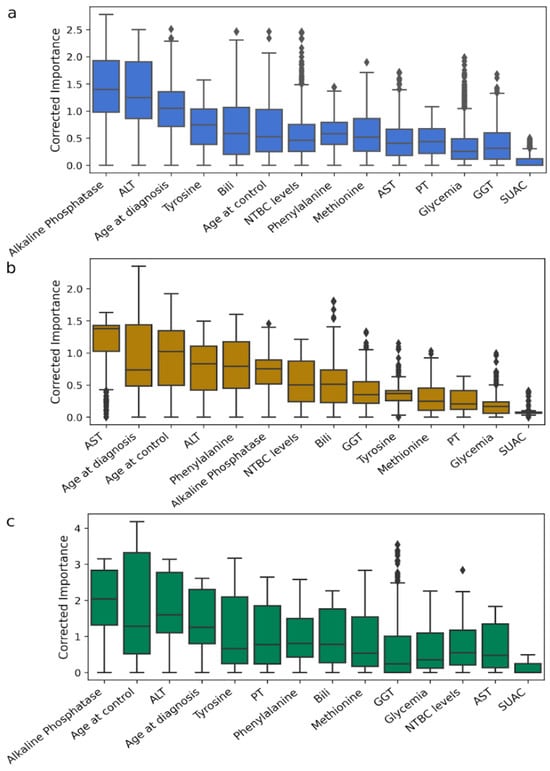 Chicago/Turabian StyleFuenzalida, Karen, María Jesús Leal-Witt, Alejandro Acevedo, Manuel Muñoz, Camila Gudenschwager, Carolina Arias, Juan Francisco Cabello, Giancarlo La Marca, Cristiano Rizzo, Andrea Pietrobattista, and et al. 2025. "Integrating Machine Learning and Follow-Up Variables to Improve Early Detection of Hepatocellular Carcinoma in Tyrosinemia Type 1: A Multicenter Study" International Journal of Molecular Sciences 26, no. 8: 3839. https://doi.org/10.3390/ijms26083839