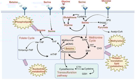 - Figueroa-Soto, C.G.; Valenzuela-Soto, E.M. Glycine betaine rather than acting only as an osmolyte also plays a role as regulator in cellular metabolism. Biochimie 2018, 147, 89–97. [Google Scholar] [CrossRef]