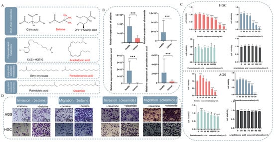 2.2. One-Carbon Donor Metabolite Betaine Inhibits the Development and Progression of Gastric Cancer (GC) Cells
