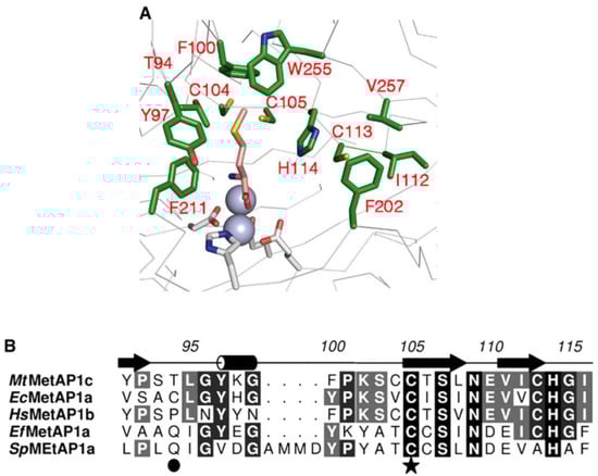 - Swierczek, K.; Copik, A.J.; Swierczek, S.I.; Holz, R.C. Molecular discrimination of type-I over type-II methionyl aminopeptidases. Biochemistry 2005, 44, 12049–12056. [Google Scholar] [CrossRef]