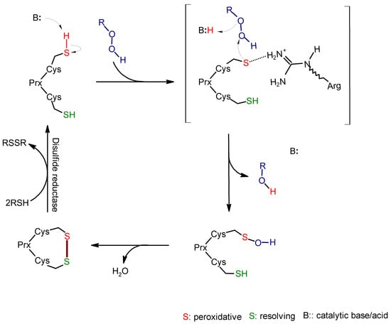 - Wood, Z.A.; Schröder, E.; Robin Harris, J.; Poole, L.B. Structure, mechanism and regulation of peroxiredoxins. Trends Biochem. Sci. 2003, 28, 32–40. [Google Scholar] [CrossRef]