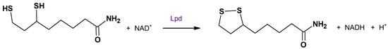 - Argyrou, A.; Blanchard, J.S.; Palfey, B.A. The lipoamide dehydrogenase from Mycobacterium tuberculosis permits the direct observation of flavin intermediates in catalysis. Biochemistry 2002, 41, 14580–14590. [Google Scholar] [CrossRef]