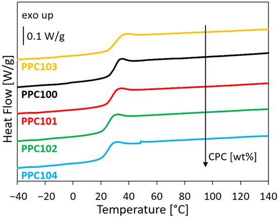 DSC traces of the PPC materials (second heating scans) were ordered on the basis of the CPC content.