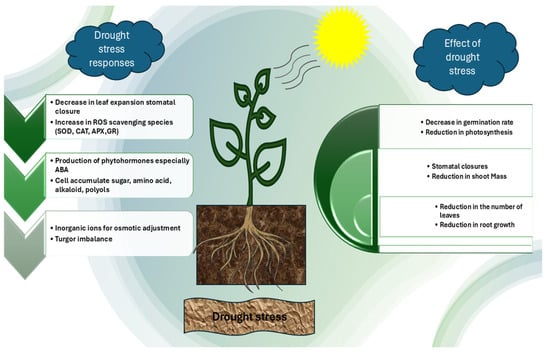 - Seleiman, M.F.; Al-Suhaibani, N.; Ali, N.; Akmal, M.; Alotaibi, M.; Refay, Y.; Dindaroglu, T.; Abdul-Wajid, H.H.; Battaglia, M.L. Drought stress impacts on plants and different approaches to alleviate its adverse effects. Plants 2021, 10, 259. [Google Scholar] [CrossRef] [PubMed]