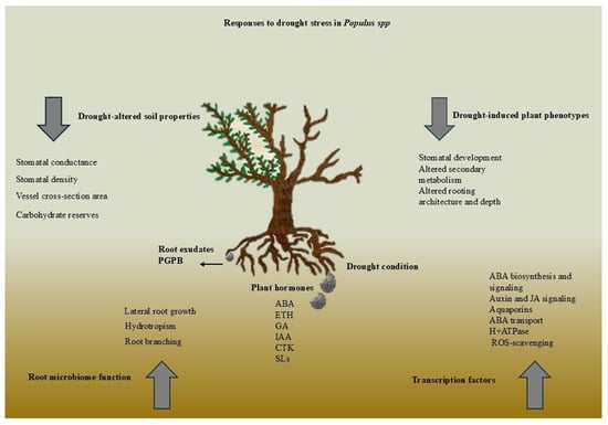 The Role of Phytohormones in Mediating Drought Stress Responses in Populus Species