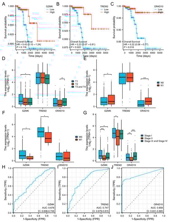 2.2. Association Between GZMK, TREM2, and OR4D10 Expression and Cancer Patient Prognosis