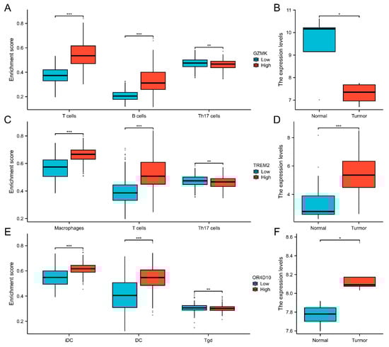 2.4. Correlation Between Immune Cell Infiltration and GZMK, TREM2, OR4D10 Expression