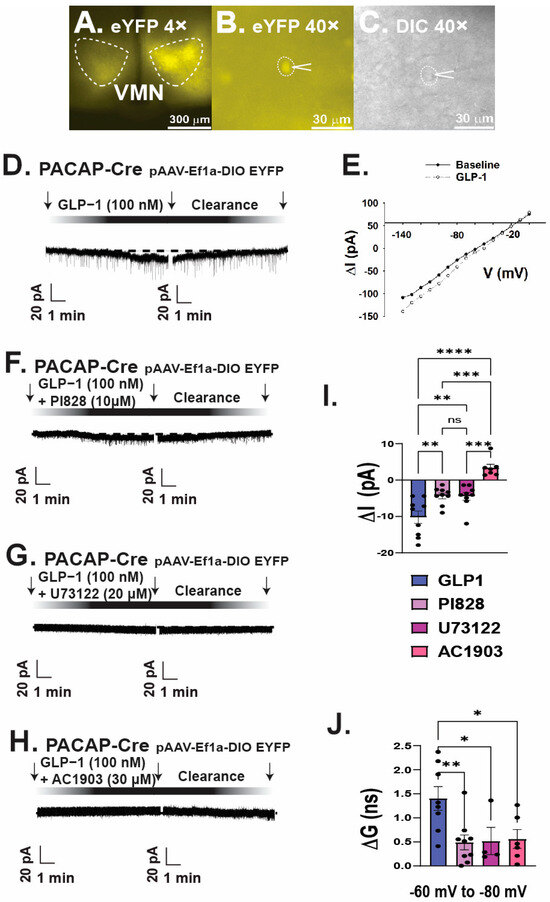 2.3. GLP1 Excites VMN PACAP Neurons via Activation of TRPC5 Channels