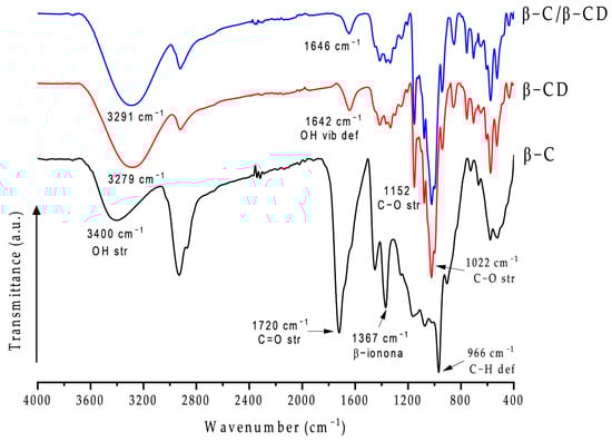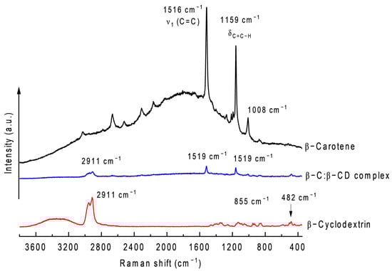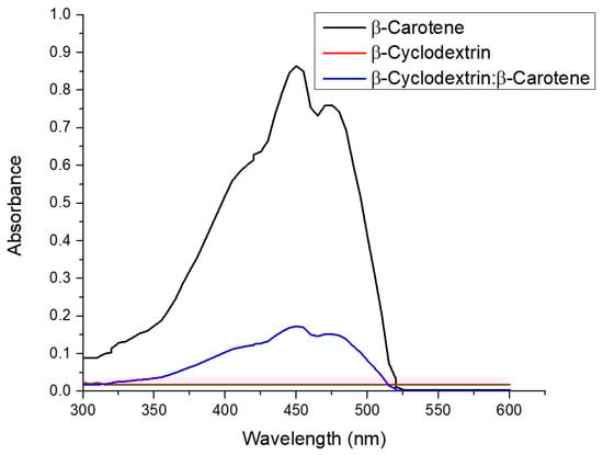 2.2. UV–Visible Spectra of β-Carotene, β-CD, and β-C/β-CD Inclusion Complex