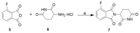 Synthesis of 14a. A mixture of lenalidomide (5.18 g, 20 mmol), Succinic anhydride (2.40 g, 24 mmol) in Acetonitrile (60 mL), and DMF (20 mL) was stirred and heated to reflux at 80 °C for 4 h. After natural cooling to room temperature, the product 12 was obtained by suction filtration under normal pressure in 69% yield.
