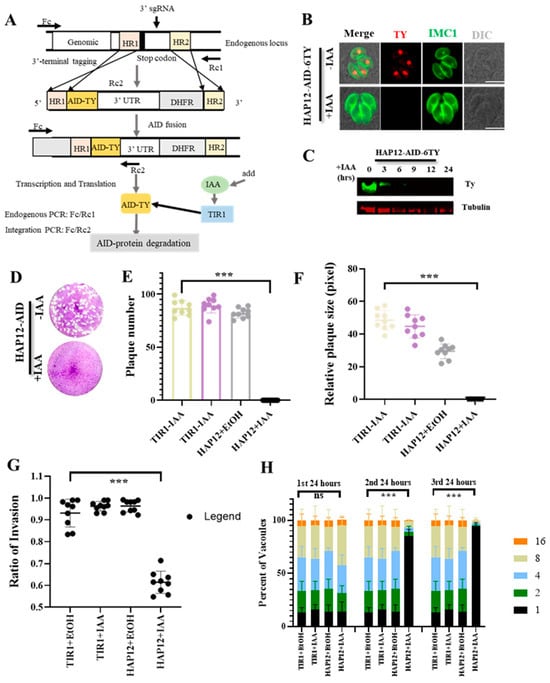 2.2. Inducible Degradation of HAP12 Impairs Parasite Invasion and Survival