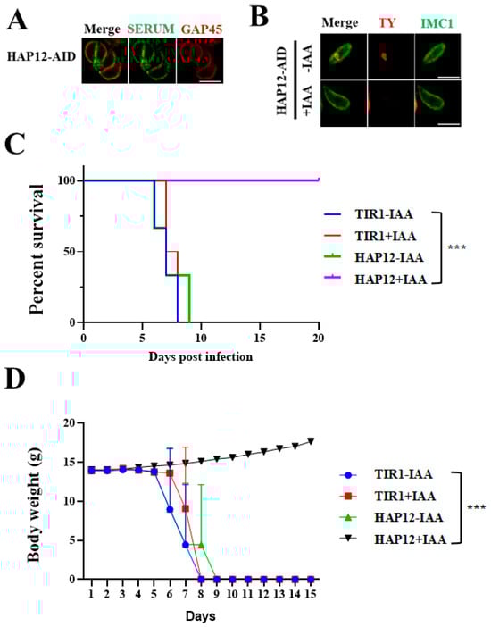 2.5. Inducible Degradation of HAP12 in Mice Reveals Its Critical Role in Parasite Virulence