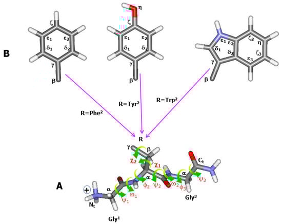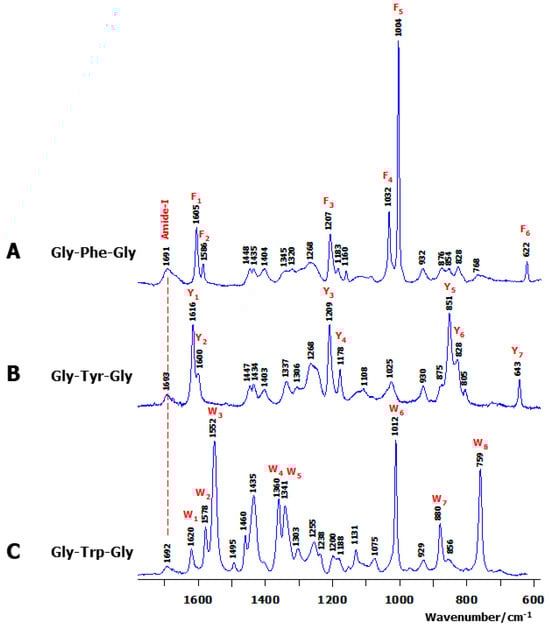 Hernández, B.; Coïc, Y.-M.; Kruglik, S.G.; Sanchez-Cortes, S.; Ghomi, M. Influence of Side Chain–Backbone Interactions and Explicit Hydration on Characteristic Aromatic Raman Fingerprints as Analysed in Tripeptides Gly-Xxx-Gly (Xxx = Phe, Tyr, Trp). Int. J. Mol. Sci. 2025, 26, 3911. https://doi.org/10.3390/ijms26083911
