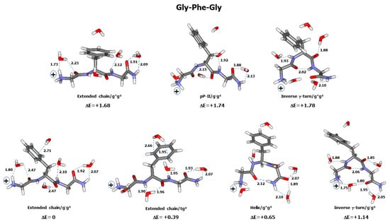 - Hernández, B.; Pflüger, F.; Kruglik, S.G.; Ghomi, M. Multiconformational analysis of tripeptides upon consideration of implicit and explicit hydration effects. J. Mol. Graph. Modell. 2021, 102, 107790. [Google Scholar] [CrossRef]
