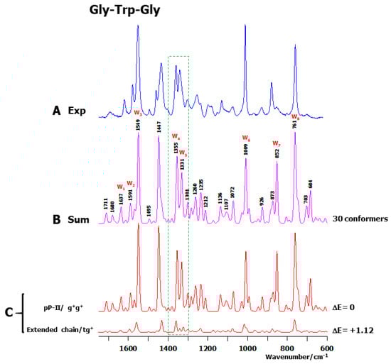| W5 | 1340 | ν(Cζ2-Cη); ν(Cζ3-Cη); ν(Cε2-Cζ2); ν(Cδ2-Cε2) |