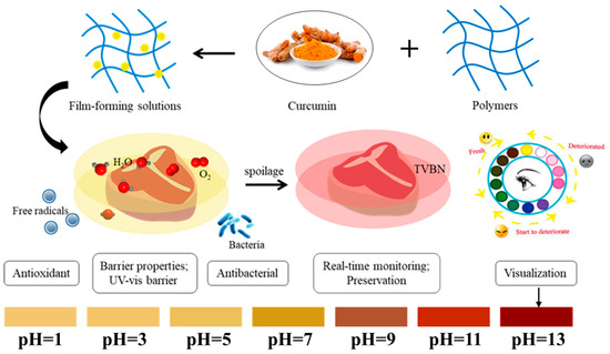 Figure 4. Preparation and properties of intelligent films loaded with curcumin [58,59].