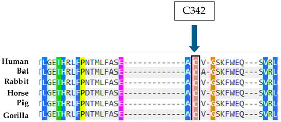 In the Supplementary Materials (Figures S1 and S2), we report the molecular structure of the entire protein, with special reference to the p.C381 position.