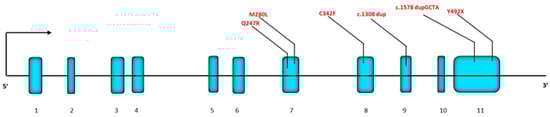 - Richards, S.; Aziz, N.; Bale, S.; Bick, D.; Das, S.; Gastier-Foster, J.; Grody, W.W.; Hegde, M.; Lyon, E.; Spector, E.; et al. ACMG Laboratory Quality Assurance Committee. Standards and guidelines for the interpretation of sequence variants: A joint consensus recommendation of the American College of Medical Genetics and Genomics and the Association for Molecular Pathology. Genet. Med. 2015, 17, 405–424. [Google Scholar] [CrossRef] [PubMed] [PubMed Central]