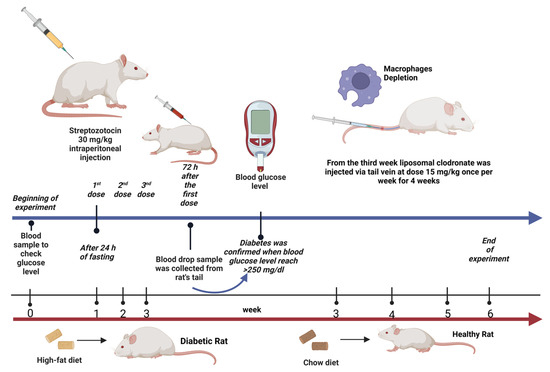 - group 3: Nondiabetic rats were treated with LC (15 mg/kg, i.v.) once a week starting from week 3 for a 4-week period [58,59].