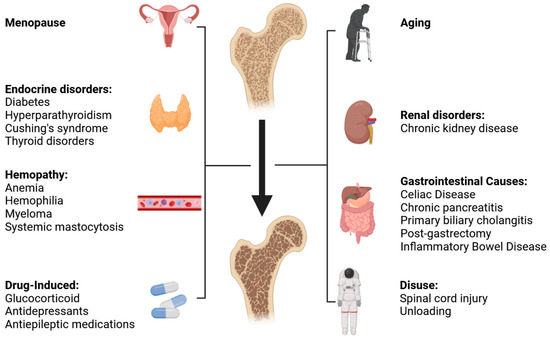 - Ebeling, P.R.; Nguyen, H.H.; Aleksova, J.; Vincent, A.J.; Wong, P.; Milat, F. Secondary Osteoporosis. Endocr. Rev. 2022, 43, 240–313. [Google Scholar] [CrossRef]