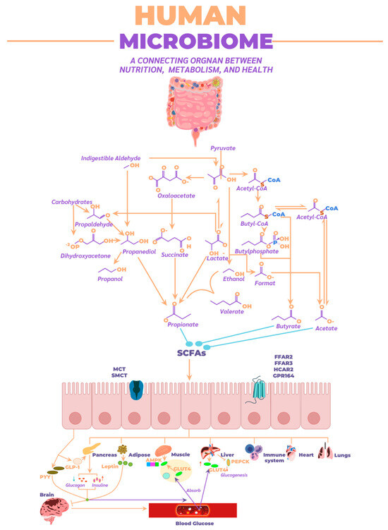 The gut microbiome plays a crucial role in human health by facilitating the digestion and metabolism of nutrients that the body cannot process on its own. Through various biochemical interactions, these bacteria generate bioactive compounds such as SCFAs (primarily acetate, propionate, and butyrate), which are the end products of this process and significantly impact human health [107]. Butyrate becomes the main energy source for colonocytes. Propionate mainly targets the liver, while acetate is released into the peripheral circulation. A proper balance between acetate and propionate is associated with positive effects on metabolism [108].