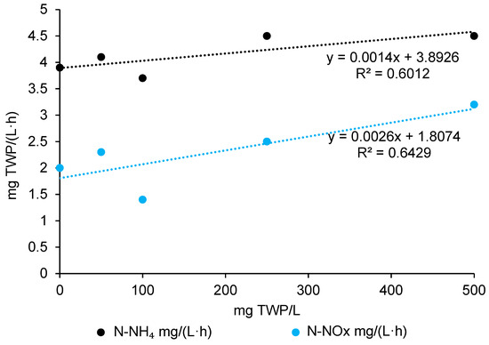 | TWP Concentration mg/L | N-NH4 mg/(L·h) | N-Nox mg/(L·h) |