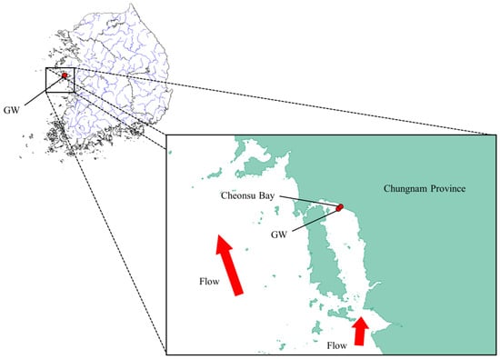 Interestingly, the GW population has a high number of alleles despite the low observed heterozygosity. This could be due to the increase in alleles caused by the transplantation of a different population into the GW population. Although genetic diversity is low, the transplantation of a new population can increase the number of alleles. In fact, since the 1970s, fishermen have transplanted C. gigas from the southern coast of Korea to Cheonsu Bay in Chungnam Province several times [21] [local fisherman, personal communication]. This transplantation of a new population could have introduced new alleles into the population and increased the number of alleles. However, if a new population was introduced, the FIS value should have decreased; the reason for the high FIS value is thought to be as follows: in the case of the GW population, Cheonsu Bay, where GW is located, is a semi-closed bay with geographical characteristics that severely restrict water circulation (Figure 3). Even if individuals transplanted from the southern coast were incorporated into the GW population, the geographical characteristics likely caused individuals confined in the inner bay to have a high probability of inbreeding through mating over an extended period of time. Although the exact cause of the increased allelic diversity and elevated FIS value observed in the GW population is unknown, historical records and geographical constraints suggest that sustained mating within a transplanted, closed population is a likely explanation.