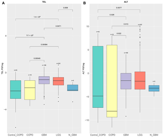 3.2. Subtype-Specific Variations in TEL and ALT Pathway Activation