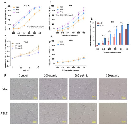 2.4. Effects of FSLE on the Proliferation and Migration of PANC-1 Cells