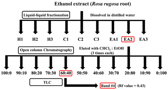 - Park, B.-J. Isolation of main component and antioxidant activities on the stem and root of Rosa rugosa. Korean J. Plant Res. 2008, 21, 402–407. [Google Scholar]