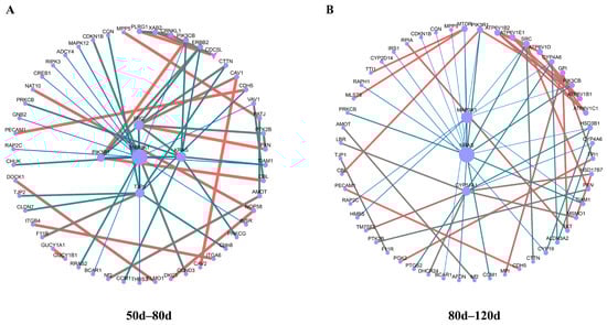 Hup network construction among different stages. (A): Hup network construction in 50–80 d. (B): Hup network construction in 80–120 d.