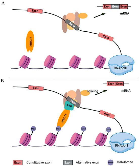 - Luco, R.F.; Pan, Q.; Tominaga, K.; Blencowe, B.J.; Pereira-Smith, O.M.; Misteli, T. Regulation of alternative splicing by histone modifications. Science 2010, 327, 996–1000. [Google Scholar] [CrossRef] [PubMed]