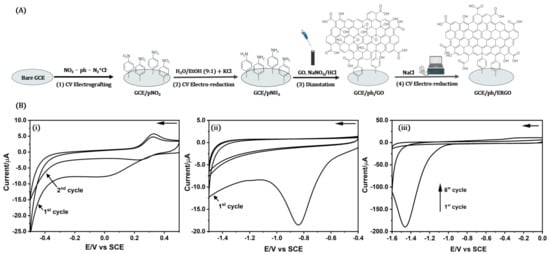 - Zhou, A.; Bai, J.; Hong, W.; Bai, H. Electrochemically reduced graphene oxide: Preparation, composites, and applications. Carbon 2022, 191, 301–332. [Google Scholar] [CrossRef]