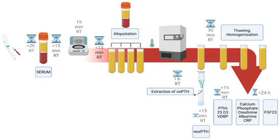 - Cheng, J.; Mu, D.; Wang, D.; Qiu, L.; Cheng, X. Preanalytical considerations in parathyroid hormone measurement. Clin. Chim. Acta 2023, 539, 259–265. [Google Scholar] [CrossRef] [PubMed]
