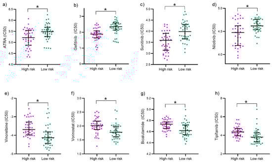 4.7. Drug Sensitivity Analysis Using pRRophetic for High-Risk Uveal Melanoma Patients