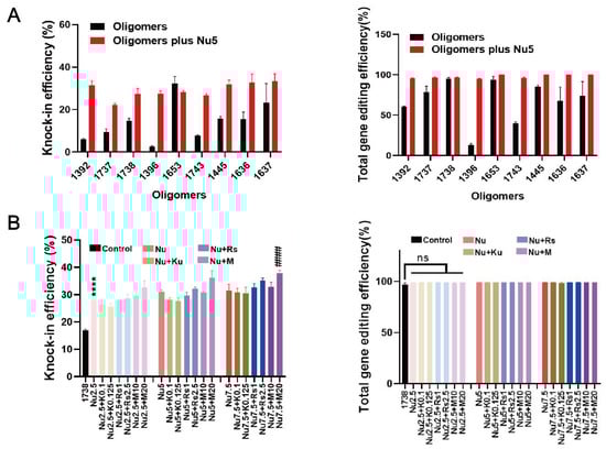 2.2. HDR and Gene Editing Efficiency with Various T-Shaped XPs or Enhancer Combinations