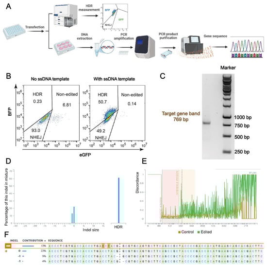 2.7. Comparison of HDR Efficiency in Flow Cytometry and Gene Sequence Measurement