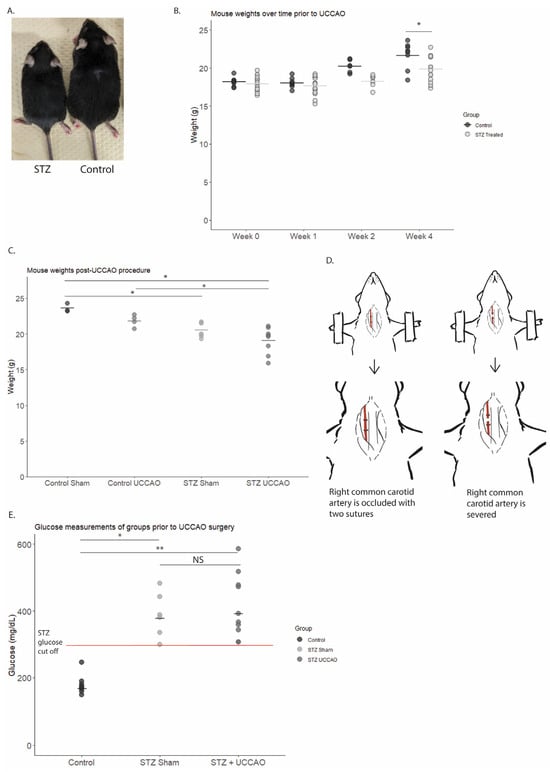 2.1. General Physiological Changes Observed in STZ-UCCAO Mice