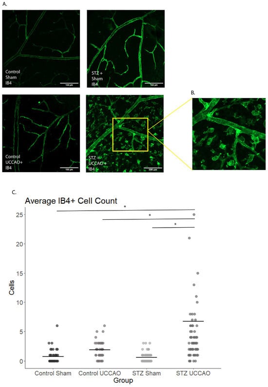 APA StyleGettinger, K., Lee, D., Negishi, K., & Kurihara, T. (2025). Unilateral Common Carotid Artery Occlusion in Adult Mice with Streptozotocin Comorbidity Leads to Early Retinal Inflammation. International Journal of Molecular Sciences, 26(9), 4385. https://doi.org/10.3390/ijms26094385
