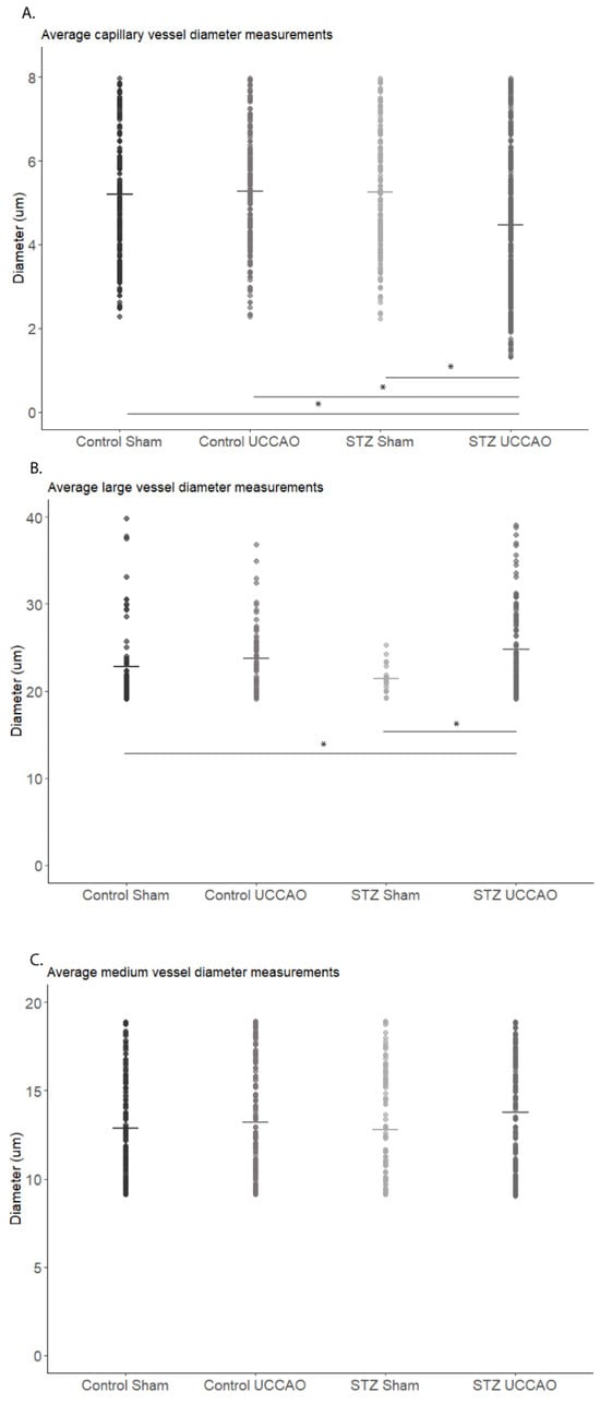 2.3. STZ UCCAO Retinas Demonstrate Vascular Changes Not Described in STZ-Only Mice