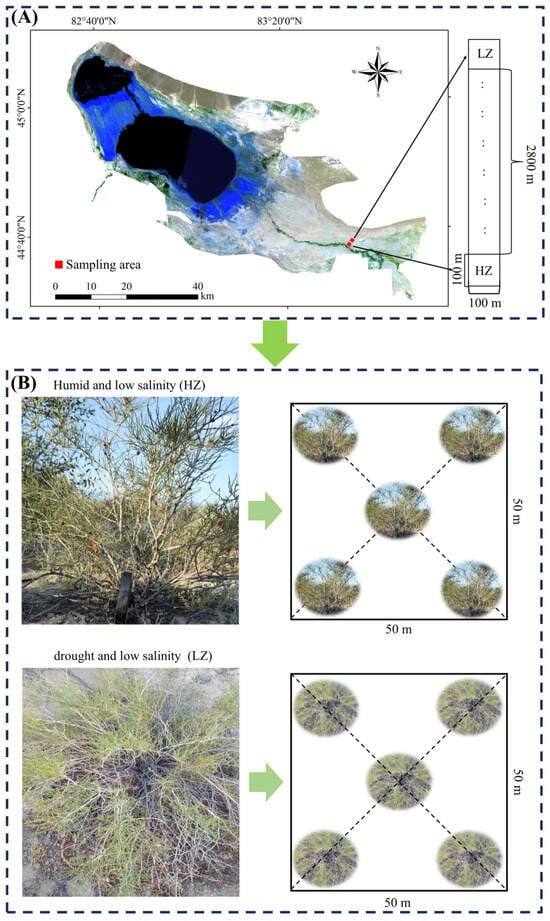 - Li, C.J.; Han, H.; Ablimiti, M.; Liu, R.; Zhang, H.; Fan, J.L. Morphological and physiological responses of desert plants to drought stress in a man-made landscape of the Taklimakan desert shelter belt. Ecol. Indic. 2022, 140, 109037. [Google Scholar] [CrossRef]