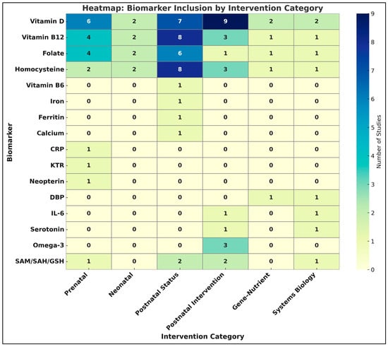 - Breadth of Study Type Representation (0–6): Captures the diversity of methodological contexts in which the biomarker was studied (e.g., prenatal, postnatal, intervention, systems biology).