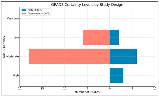 3.3.2. Quality Assessment of Observational Studies Using the Newcastle-Ottawa Scale (NOS) and Certainty of Evidence Evaluation According to GRADE Criteria